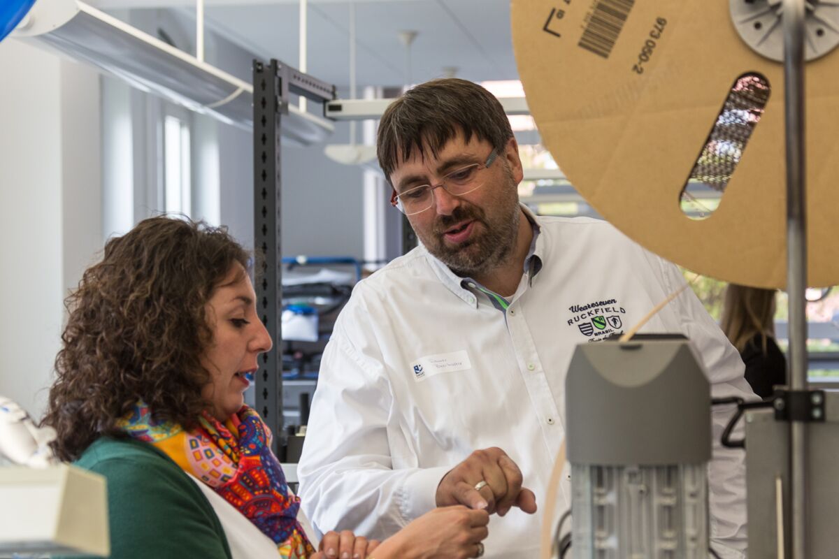 Das Jubiläumsfest fand in den alten und neuen Firmenräumen von SMART in der Rötestrasse 17 in Stuttgart statt. Seit Oktober befindet sich dort auch die SMART Manufaktur, so dass nun alle SMARTIES unter einem Dach vereint sind. Natürlich nutzten wir auch die Gelegenheit, Kunden und Freunden zu zeigen, womit wir uns hier Tag für Tag beschäftigen. Beispielsweise konnten sie die neue Weboberfläche der CVM IntelliProbe-Systeme live erleben oder das Crimpen mit der Crimp-Maschine ausprobieren. Großer Beliebtheit erfreute sich auch der nagelneue Tischkicker, der in den neuen Räumen der SMART Manufaktur Platz gefunden hat und künftig für bewegte Pausen sorgen soll.